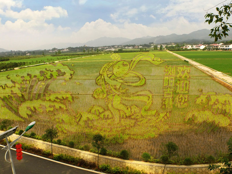 整幅作品运用了三维立体透视技术,定位点的误差范围都控制在2cm-3cm以内。画作中吉祥娃娃清晰可见的笑容,可以直接感染到在场的观赏者。此幅作品随着时间推移,彩色水稻颜色开始变化,作品的视觉效果越发的美观,画面愈加丰富。